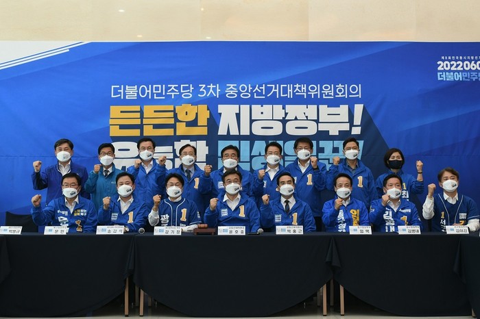 한편 이날 회의에는 강기정 광주광역시장 후보, 윤호중 비상대책위원장. 박홍근 원내대표, 송갑석 광주시당위원장, 서삼석·신정훈·이병훈·이용빈·조오섭·윤영덕·김경만 국회의원, 임택 동구청장 후보, 김이강 서구청장 후보, 김병내 남구청장 후보, 문인 북구청장 후보, 박병규 광산구청장 후보 등이 참석했다.