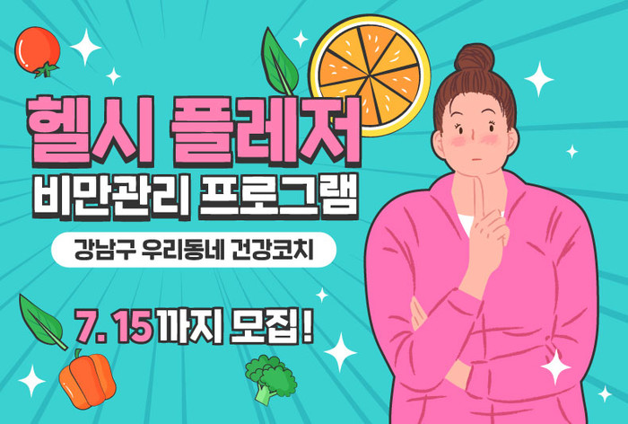 [시민일보 = 이대우 기자] 서울 강남구보건소가 올해의 건강 트렌드 ‘헬시 플레저(Healthy Pleasure; 건강 관리의 즐거움)’에 맞춰 오는 15일까지 기획한 비만예방관리 프로그램 ‘강남구, 우리동네 건강코치’에 참여할 사업장 및 단체를 모집한다.