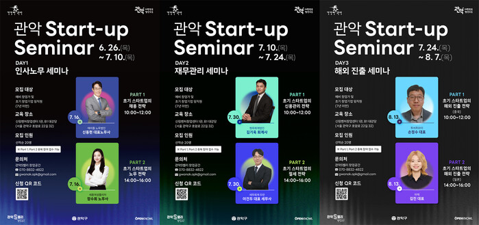 [시민일보 = 문민호 기자] 관악구(구청장 박준희)는 예비·초기 창업가들의 분야별 기초 역량 강화를 위해 ‘2025 관악 스타트업 세미나’를 개최한다.
