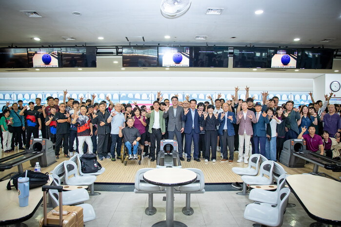 [성남=오왕석 기자] 성남시의회(부의장 안광림을 비롯한 의원들)는 27일 탄천종합운동장 볼링장에서 ‘2025 성남시의회 의장배 농아인볼링대회’를 열고 참가 선수들을 응원하며 대회의 막을 올렸다.