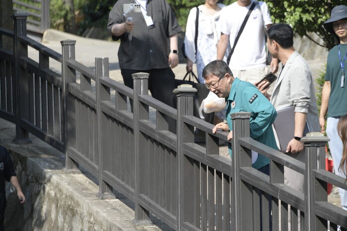 | ▲ 지난 6일 김경호 구청장이 긴고랑계곡을 살피고 있다. (사진=광진구청 제공) |