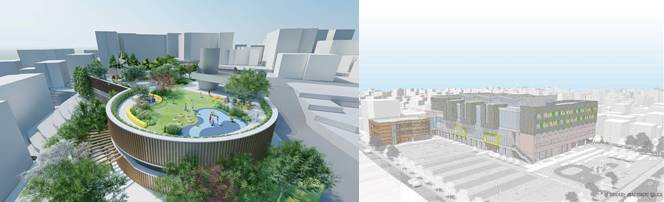 | ▲ (왼쪽부터)새장골공영주차장 복합시설 조감도, 갈현초등학교 복합시설 조감도.(사진=은평구청 제공) |