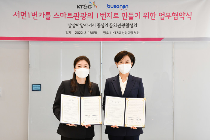 이번 협약은 KT&G상상마당 부산이 위치한 서면 1번가(상상마당 사거리)를 중심으로 스마트관광 활성화와 신발산업특구의 브랜드가치 향상을 목적으로 진행됐다.