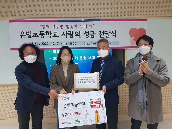유미송 서울은빛초등학교 학부모회장은 “보다 의미 있는 곳에 쓰이면 하는 마음으로 학교와 학부모회가 함께 고민한 끝에 주민센터에 기부했다”며 “추운 겨울을 힘겹게 나고 있는 이웃에게 잘 전달됐으면 좋겠다”고 밝혔다.