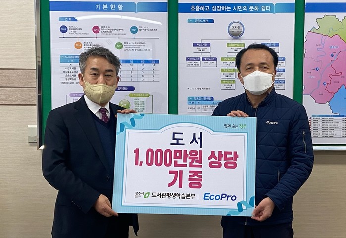 청주에 위치한 기업인 ㈜에코프로에서 16일 청주시 도서관평생학습본부(본부장 장우원)에 1000만 원 상당의 도서를 기증했다.