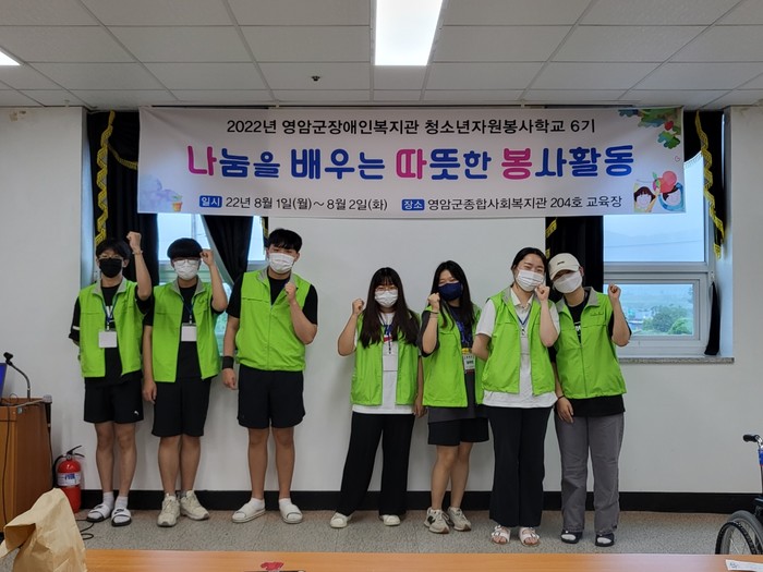 영암군 장애인종합복지관 관계자는 “더불어 살아가는 공동체 의식과 나눔을 배우는 따뜻한 봉사를 통해 다양한 방식으로 청소년들의 자원봉사활동이 활성화 될 수 있도록 하겠다.”고 말했다.