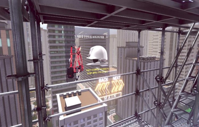 VR 체험 유형으로는 ▲고층에서 추락 ▲타워크레인서 철근자재가 떨어지는 낙하 사고 ▲용접 화재 등 총 3종으로 구성됐으며, 분량은 각 3~4분씩 총 10분이다. 또 외국인 근로자의 편의를 돕기 위해 영어, 중국어 자막도 준비됐다.