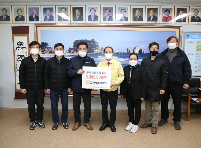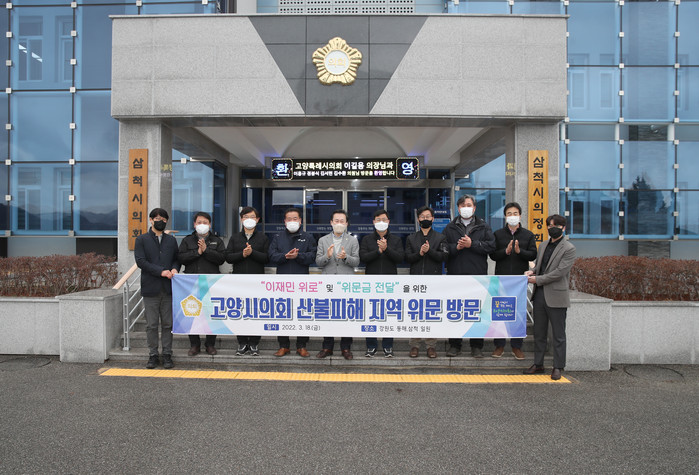[고양=이기홍 기자] 고양시의회가 18일 산불피해 현장인 강원도 동해시와 삼척시를 방문하여 피해현황을 살피고 일상 회복을 돕기 위한 위문금을 전달했다.