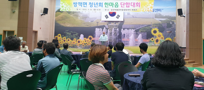 합천군 쌍책면 청년회(회장 전송운)은 지난 23일 합천박물관마을 힐링센터에서 전송운 청년회장, 이동률 쌍책면장, 노태윤 동부농협장, 이만우 합천군청년연합회장, 쌍책면 청년회 전임회장을 비롯한 60여 명이 모인 가운데 한마음 단합대회 행사를 가졌다.