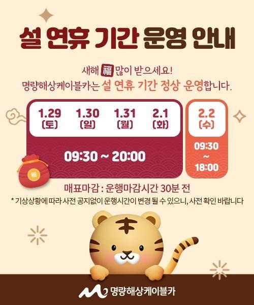 | ▲ 명량해상케이블카, 설연휴 기간 운영 안내 이미지 / 해남군 제공 |