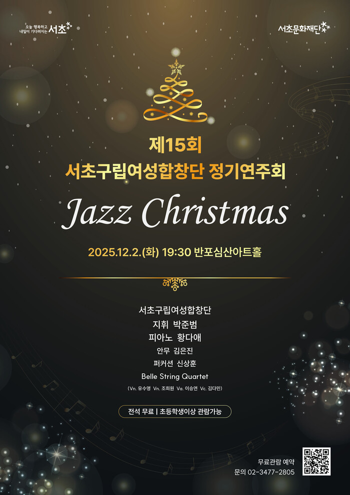 [시민일보 = 박소진 기자] 서초문화재단은 오는 12월2일 오후 7시30분, 반포심산아트홀에서 제15회 서초구립여성합창단 정기연주회 ‘Jazz Christmas’를 개최한다.