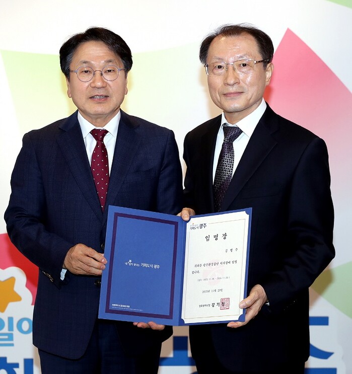 김 신임 이사장은 임원추천위원회 서류심사와 면접심사, 광주시의회 인사청문회를 거쳐 광주환경공단을 이끌 적임자로 평가됐다. 앞서 광주시의회는 인사청문특별위원회를 구성해 이사장 후보자에 대한 청문 절차를 거친 뒤 지난 28일 인사청문 경과보고서를 채택, 광주시에 송부했다.