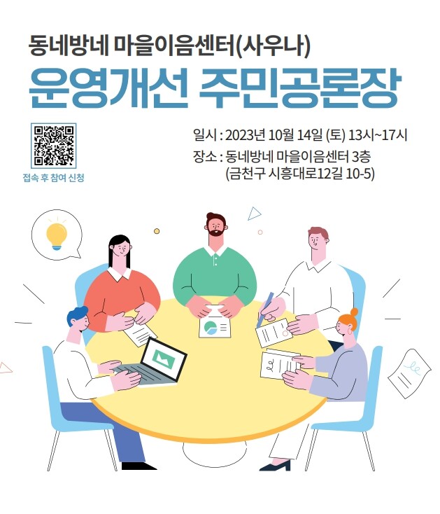 | ▲ ‘동네방네 마을이음센터(사우나) 운영개선 주민공론장’ 홍보물 (사진=금천구청 제공) |