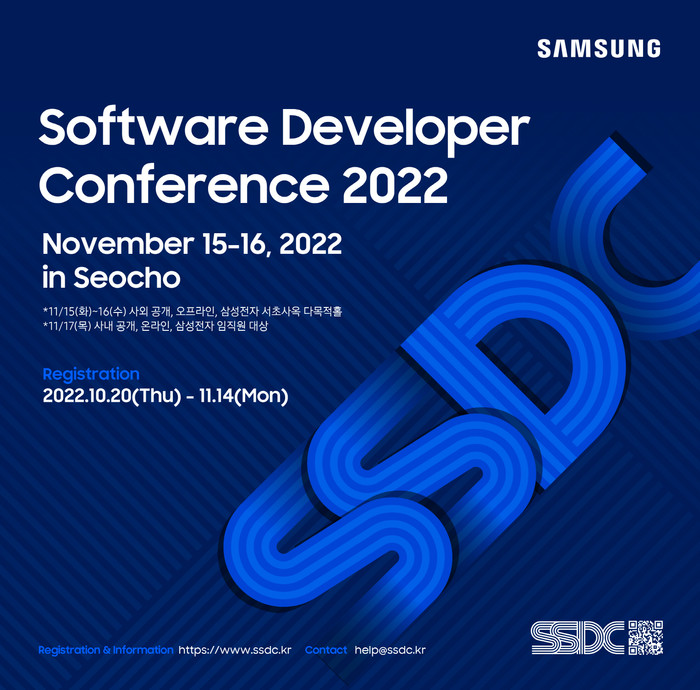 [시민일보 = 여영준 기자] 삼성전자는 오는 11월15~16일 양일간 '삼성 소프트웨어 개발자 콘퍼런스(Samsung Software Developer Conference, 이하 'SSDC') 2022'를 개최한다고 20일 밝혔다.