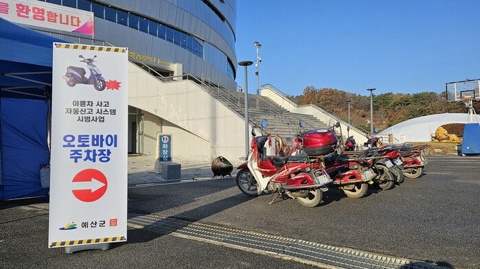 앞서 군은 지난 10월16일 예산경찰서, 예산소방서, 교통안전공단과 교통사고 예방을 위한 이륜차 자동신고 시스템 시범사업 상호 업무협약을 체결했다.