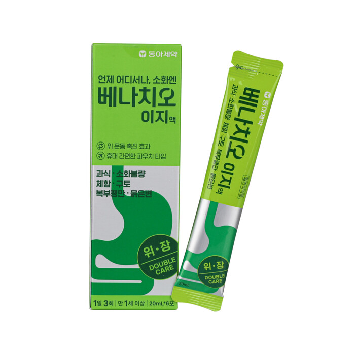 한편, 동아제약 종합 소화제 브랜드인 베나치오는 생약 성분을 함유한 무탄산 소화제다. 어린이 소화정장제 베나치오키즈액부터 베나치오액(20ml/병), 베나치오에프액(75ml/병), 베나치오 이지액까지 총 4가지 제품으로 구성하여 연령, 용량, 상황에 따라 선택적으로 복용할 수 있다.