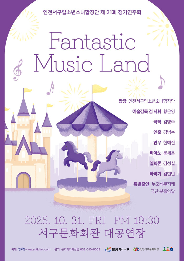 [인천=문찬식 기자] 인천 서구립소년소녀합창단이 오는 31일 오후 7시30분 서구문화회관 대공연장에서 제21회 정기연주회 ‘Fantastic Music Land’를 개최한다.