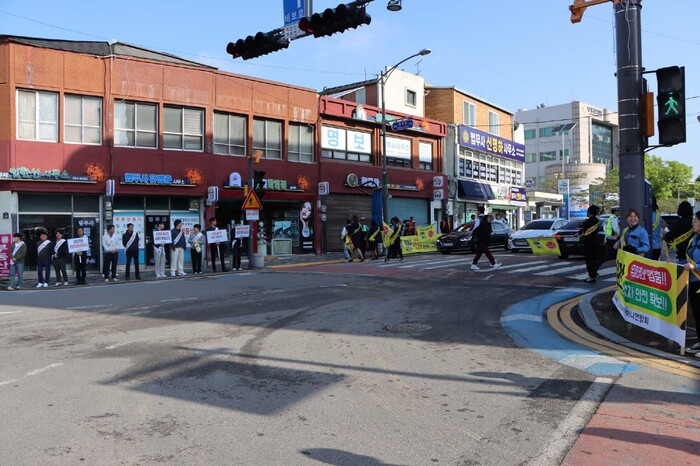 참가자들은 현수막과 소형 팻말 등을 이용해 교통안전 의식에 대한 군민의 관심을 높이고 6대 불법주정차(횡단보도ㆍ인도ㆍ교차로ㆍ소화전ㆍ버스정류장ㆍ어린이 보호구역)를 상기시키는 ‘사람이 먼저’인 선진 교통문화 정착에 적극 동참하도록 유도했다.