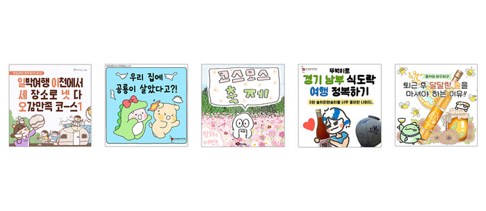 | ▲ (순서대로) '홍네', '연더랜드', '베리바스켓', '또동이툰', '용자스튜디오'에서 제작한 경기도 지역소재 인스타툰 |