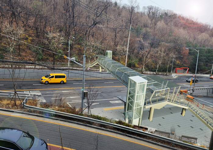 구는 곡선형 급경사인 도로 특성과 교통 흐름을 고려해 다양한 방안을 검토 후 주민 설명회를 거쳐 보도육교 설치를 추진한다.
