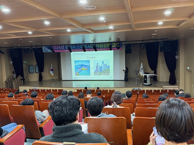 이번 교육은 유은정 연세대 교수를 강사로 초빙해 ‘하남시, 시민과 함께 만드는 미래 스마트시티’라는 주제로 진행했다.