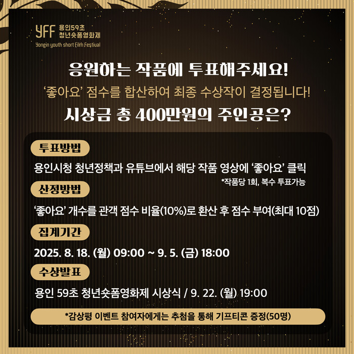 | ▲ 용인특례시 '용인 59초 청년 숏폼 영화제' 온라인 투표 시작 |