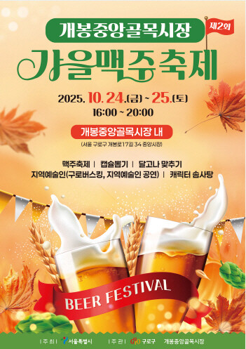 특히 24일, 25일 이틀간 개봉중앙 골목형상점가에서 ‘가을맥주축제’를 개최해 지역 주민들의 상권 이용과 참여를 높인다. 축제에서는 상점가 이용 고객을 대상으로 맥주부스와 식사공간을 제공하고 달고나 만들기 등 참여형 이벤트와 거리문화공연이 함께 진행돼 상인과 주민이 함께 즐길 수 있는 시간을 마련할 예정이다.