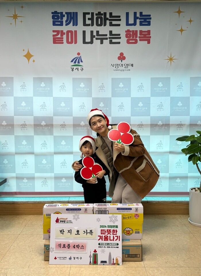 | ▲ 엄마와 함께 식료품을 기부한 박지호 어린이 (사진=강서구청 제공) |