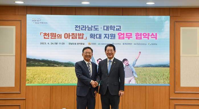 [순천=이문석 기자]청암대학교(총장직무대행 김성홍)는 지난 24일 도청 정약용실에서 ‘천원의 아침밥’사업의 안정적인 추진과 전남쌀소비 촉진을 통한 상호발전을 위해 전라남도와 업무 협약을 체결했다고 밝혔다.