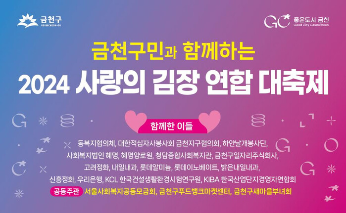 행사는 최근 기후 변화와 물가 상승으로 김장비용이 증가하면서 어려움을 겪는 지역 소외계층을 돕기 위해 마련됐다. 금천구새마을부녀회, 금천푸드뱅크마켓센터, 서울사회복지공동모금회가 주관하며, 우리은행을 비롯한 14개 기업의 후원과 주민단체의 협력으로 진행된다.