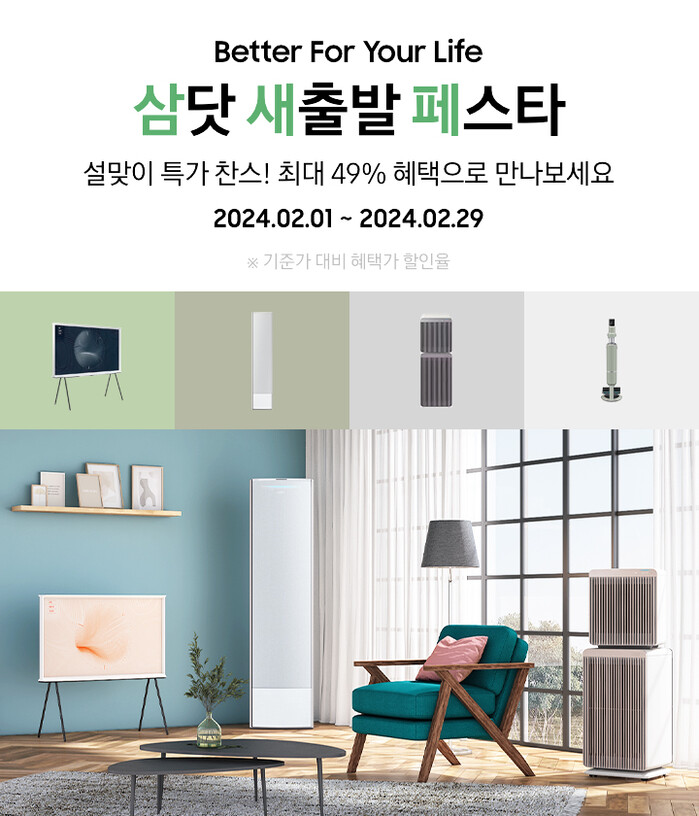 삼성전자에 따르면 1일부터 29일까지 삼성닷컴에서 진행하는 '삼닷 새출발 페스타'는 '2024 삼세페'에서 고객들에게 호응을 받았던 혜택을 이어서 선보인다.