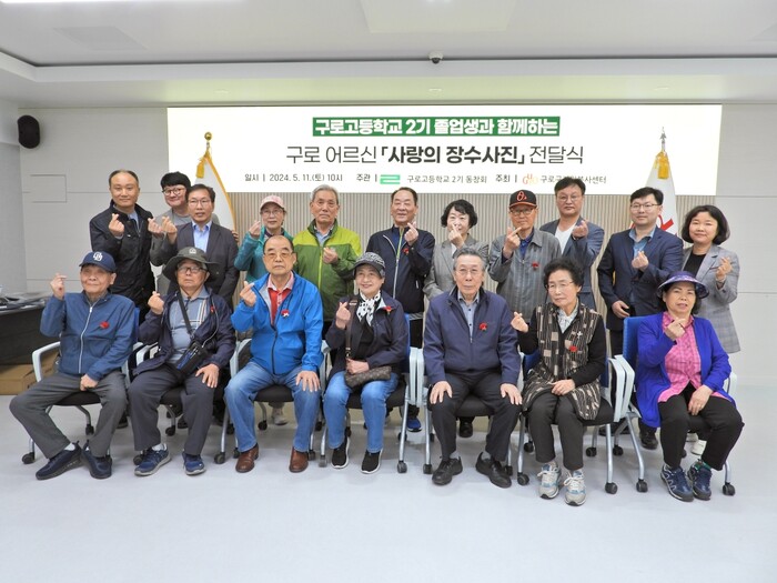 구는 지난달 20일 구로고등학교 2기 졸업생들의 봉사활동으로 촬영한 장수사진과 부부사진을 액자로 만들어 어르신들에게 전달했다.