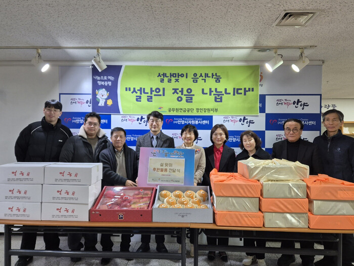 [안양=송윤근 기자] 경기 안양시자원봉사센터 소속 단체인 안양상록자원봉사단은 지난 10일 설 명절을 맞아 공무원연금관리공단 경인강원지부와 지역내 취약계층을 위한 떡국·과일 나눔 행사를 진행했다고 11일 밝혔다.