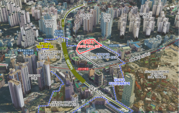 대상지는 지하철 7호선 장승배기역과 개통 예정인 서부선이 연결되는 환승역세권으로, 우수한 교통 접근성을 갖추고 있다. 특히 동작구청 신청사와 함께 장승배기 일대 도시공간 구조 재편의 핵심 거점으로 평가받는다.
