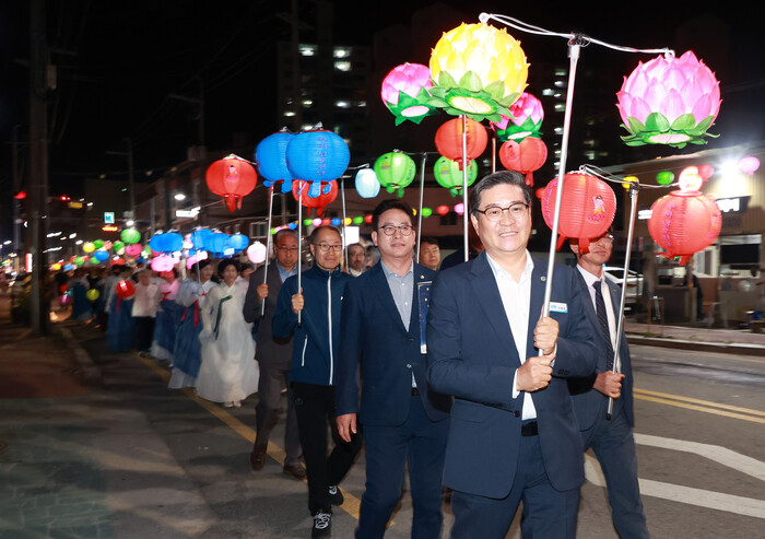 특히 이번 행사는 코로나 19로 취소됐던 제등행렬을 재개하면서 상림토요무대에서 출발해 시외버스터미널까지 행렬을 하며 부처님의 탄신을 축하하는 의미를 더했다.