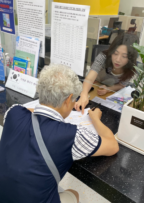 | ▲ 성동구 응봉동 주민센터에서 한 주민이 자치회관 프로그램을 신청하고 있다. (사진=성동구청 제공) |