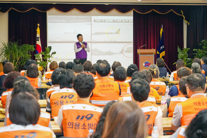 | ▲ 의용소방대원들을 대상으로 재난대비 특강을 하고 있는 이필형 구청장. (사진=동대문구청 제공) |