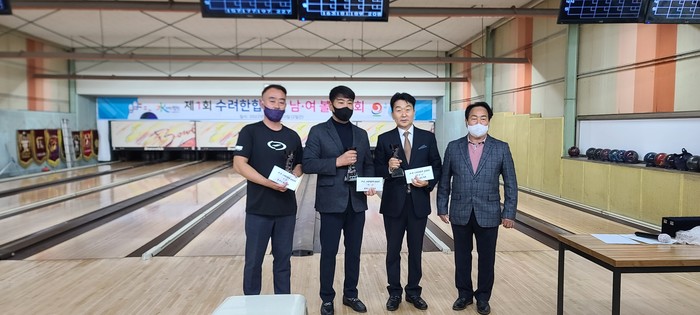 | 좌로부터 이정인, 강창희, 서영길선수, 정동연 합천볼링협회장 |