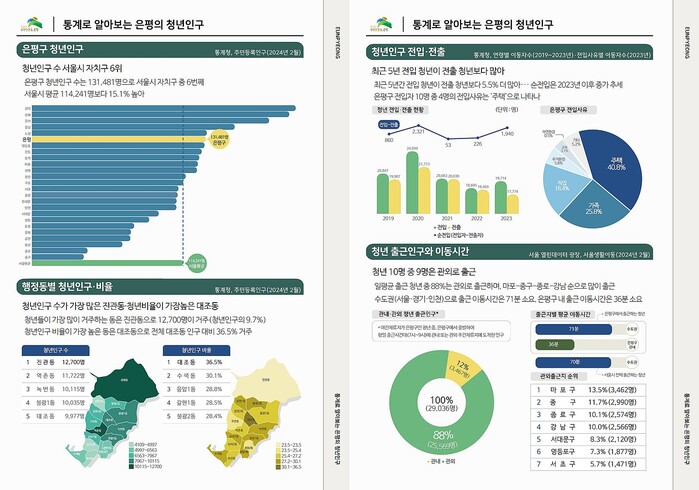 청년들이 가장 많이 거주하는 동은 진관동으로, 1만2700명이 거주한다. 청년 비율이 가장 높은 동은 대조동이며 전체의 36.5%가 청년이다.
