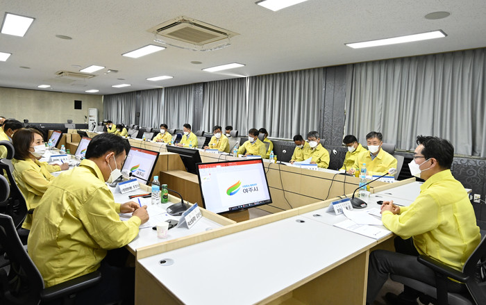 경기 여주시가 최근 시청 상황실에서 정황근 농림축산식품부 장관과 농식품부·행정안전부·환경부·검역본부·경기도 및 조정아 여주시장 권한대행을 비롯한 관계자들이 참석한 가운데 강원도 홍천군 양돈농가 아프리카돼지열병(ASF) 발생에 따른 경기도 ASF 방역실태 및 추진상황 점검 회의를 개최했다. 사진은 이날 회의 진행 모습. (사진제공=여주시청)