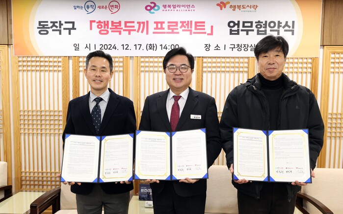 이날 협약식에는 박일하 동작구청장을 비롯해 조민영 행복나래(주) 본부장, 최준 행복도시락 사회적협동조합 사무국장 등 주요 관계자가 참석했다.