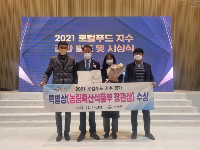 거창군은 14일 농림축산식품부가 주최하고 한국농수산식품유통공사가 주관한 ‘2021년 로컬푸드 지수 평가’에서 경남도내에서 유일하게 특별상을 수상했다.