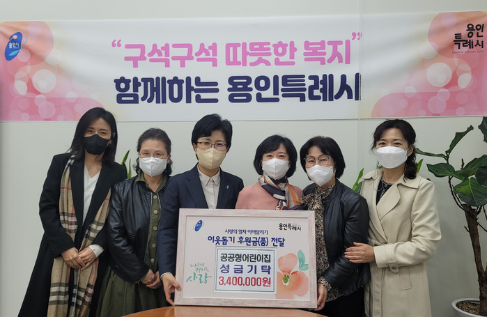 | ▲ 용인시 공공형어린이집연합회가 관내 사회복지시설을 지원하는 데 써 달라며 성금 340만원을 기탁했다. |