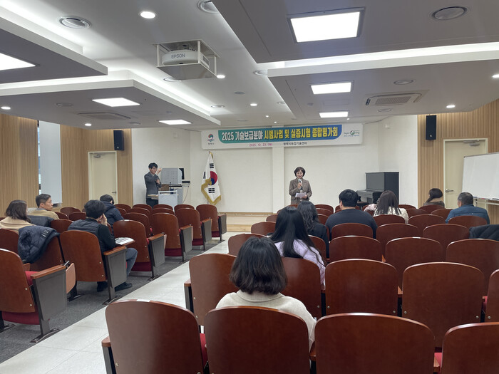 [평택=오왕석 기자] 평택시(시장 정장선)는 지난 23일(화) 농촌문화체험관 강당에서 ‘2025년도 기술보급분야 종합평가회’를 개최하고, 한 해 동안 추진한 3개 분야 총 35개 시범사업과 11개 실증시험 성과를 공유했다.