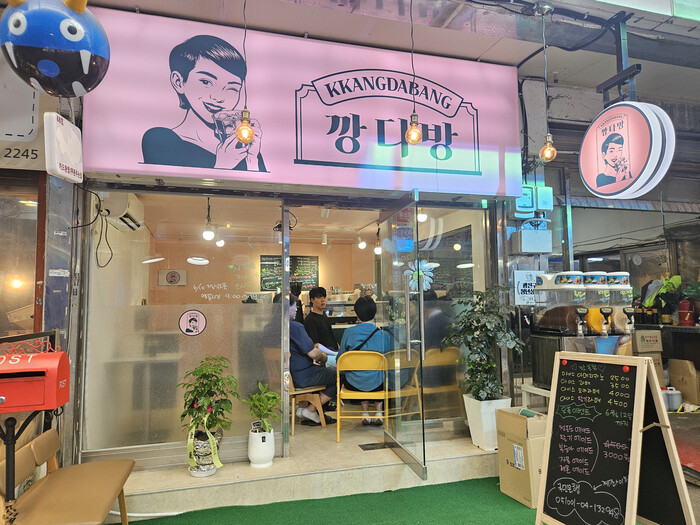 지난 10일, 중곡제일시장에서 카페 ‘깡다방’이 개업했다. 깡다방은 5평 정도 크기로 아메리카노, 카페라떼, 딸기에이드, 자몽에이드 등 음료를 파는 가게다. 고급 원두의 풍미를 느낄 수 있으며 신선한 재료로 만든 상큼한 과일의 시원함을 맛볼 수 있다.