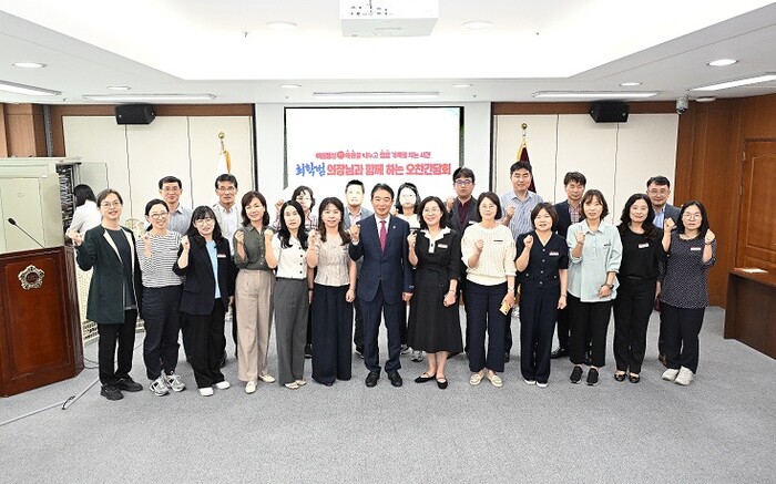 이번 의회사무처 5급 직원들과의 도시락 간담회는 7월부터 6급, 7급 이하 직원들과 2차례 소통 간담회를 각각 개최한 것과 같은 취지로, 의회사무처 전 직급별 직원들과의 편안한 소통의 자리를 마련하여 직원들이 행복하게 일할 수 있는 분위기를 조성하고자 하는 최 의장의 뜻에 따라 연이어 개최되었다.