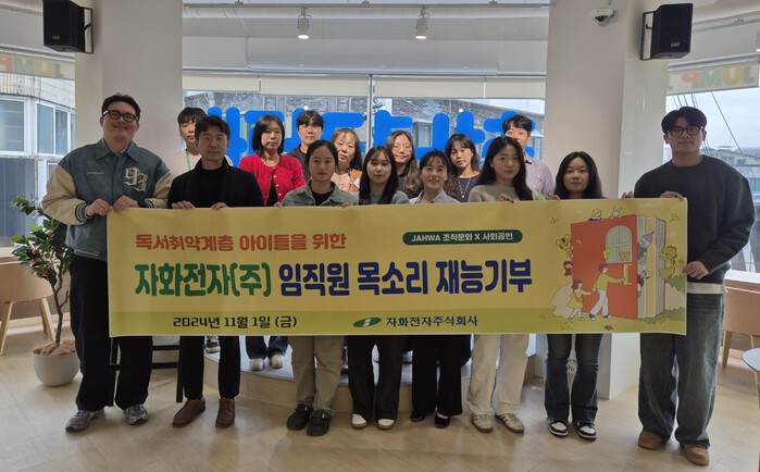 첨단소재 부품 기업 자화전자㈜가 지난 1일 독서 취약계층 아이들을 위한 임직원들이 동화책을 읽어 주는 목소리 재능기부 봉사활동을 진행했다고 밝혔다.