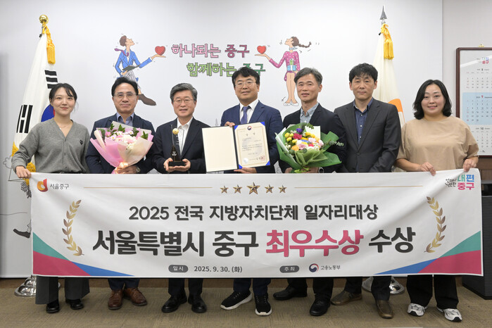 [시민일보 = 여영준 기자] 중구(구청장 김길성)가 고용노동부가 주관한 ‘2025년 전국 지방자치단체 일자리대상’ 우수사업 부문에서 전국 1위인 최우수상을 차지했다.