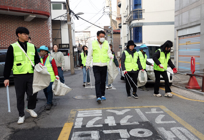 | ▲ 오승록 노원구청장이 14일 오전 8시 서울 노원구 공릉1동주민센터 뒷마당을 시작으로 공릉동 일대 새봄맞이 대청소를 주민들과 함께 하고 있다. (사진=노원구청 제공) |