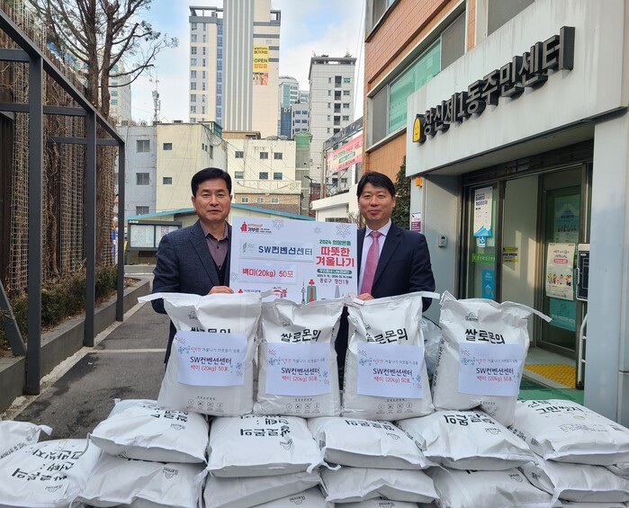 [시민일보 = 이대우 기자] 서울 종로구 곳곳에서 어려운 이웃을 위한 ‘백미 후원’이 계속돼 훈훈함을 선사하고 있다. 사진은 SW컨벤션센터가 창신1동주민센터로 백미 1000kg를 기부하고 기념촬영을 하고 있는 모습.